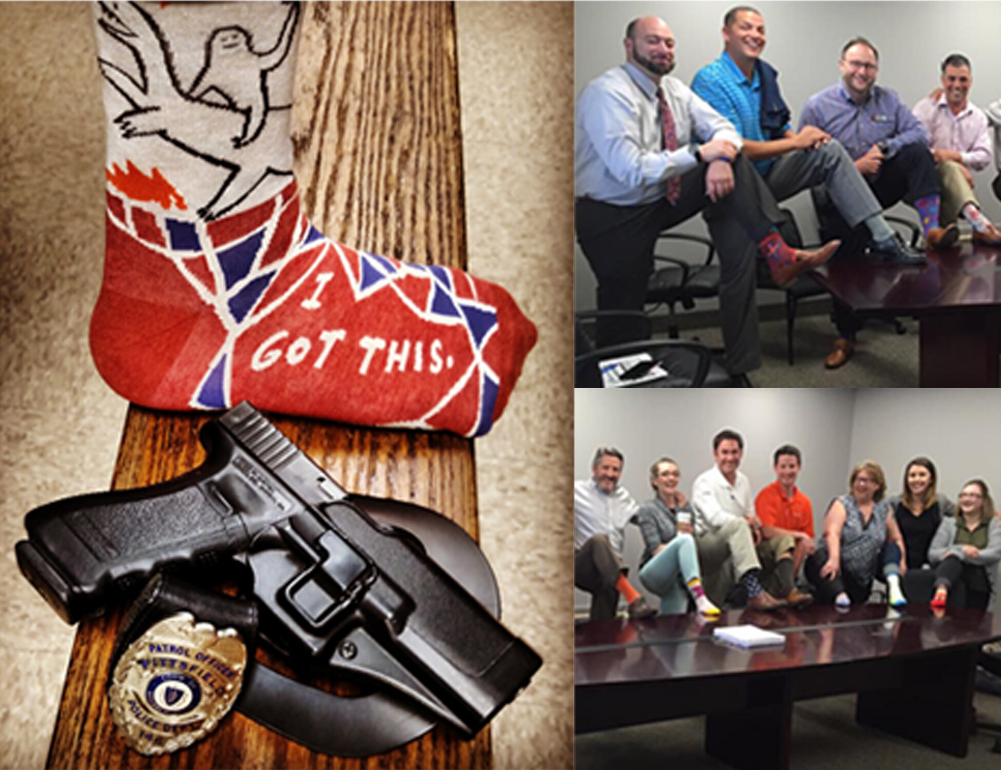 Here’s just a small sample of the many participants in the Haddad Sock Game: Officer Darren Derby of the Pittsfield Police Department and the brains behind the #HoopsNotCrime chapter in Pittsfield (Left) and our Haddad Auto Management Team (Right). Haddad Subaru would like to make a special thank you to Blue Q here in Pittsfield for providing us with a steady supply of socks to give out to customers!