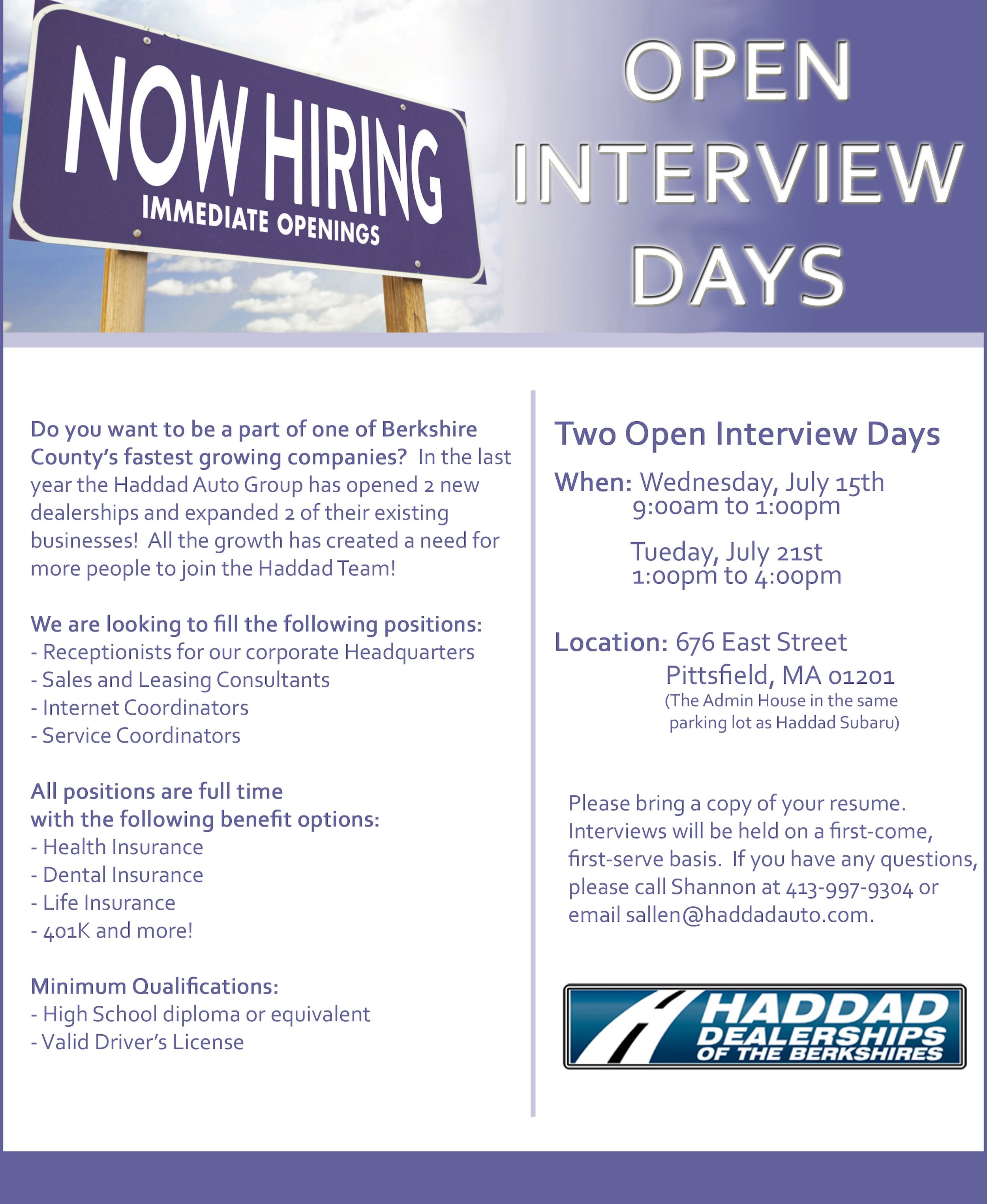 Take it from us, the Haddad Auto Group is a great place to work! We have great pay plans, great benefits and - most importantly - we have a great team. Interested in joining the largest Auto Group in Berkshire County? Check out our Pittsfield MA job openings below: