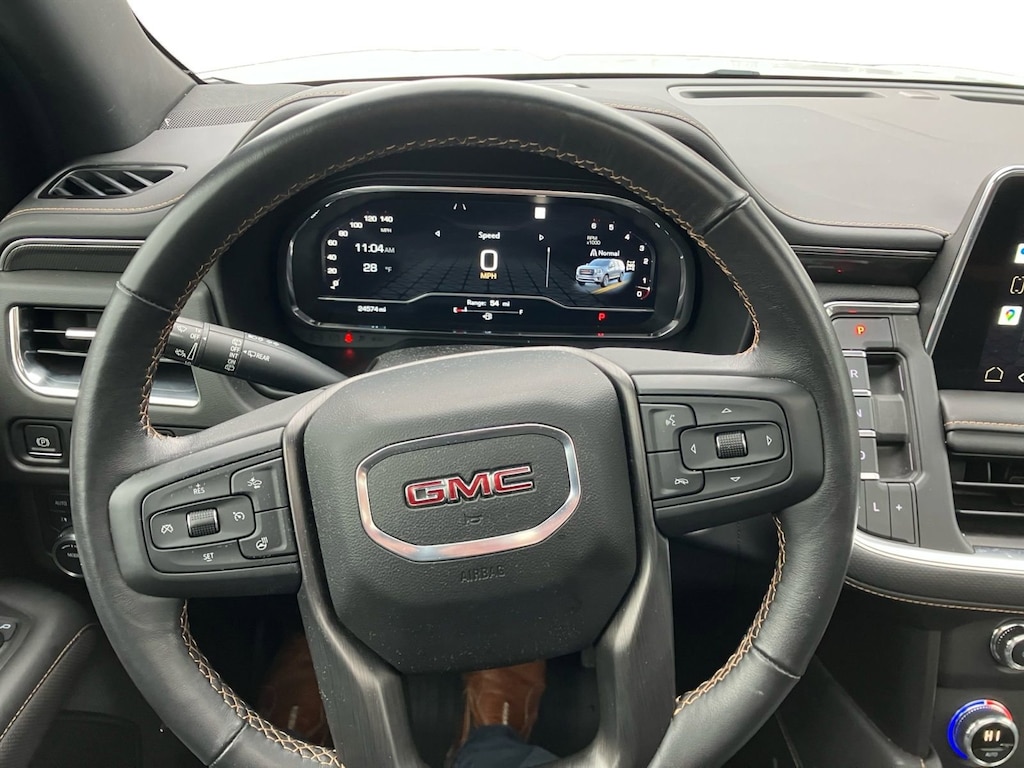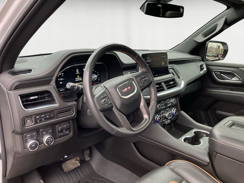 The selling price of the vehicle is market price plus the dealer documentation fee of $599, and the title fee of $5.00 that dealers may charge to procure the certificate of title. This vehicle may have an open recall. The dealer will make all reasonable attempts to clear this recall. If parts or non-remedy repairs are not available there may be a continued claim to monitor. License Plate Front Mounting Package, Max Trailering Package (Extra Capacity Cooling System), Preferred Equipment Group 4SB (2 Presets For Outside Rearview Mirrors, 3 Years of GMC Connected Services, 3rd Row 60/40 Power-Folding Split-Bench Seat, Automatic Stop/Start, Black Roof-Mounted Luggage Rack Side Rails, Bose 9-Speaker Stereo Audio System Feature, Bright Front & Rear Door Sill Plates, Front High-Approach Angle Fascia, Hands-Free Power Programmable Rear Liftgate, Heated & Ventilated Driver & Front Passenger Seats, Heated 2nd Row Outboard Position Seats, Heated Driver & Front Passenger Seats, Heated Steering Wheel, Heavy-Duty Air Filter, Hill Descent Control, Inside Rear-View Auto-Dimming Mirror, Outside Heated Power-Adjustable Mirrors, Power Release 2nd Row 60/40 Split-Folding Bench Seat, Power Tilt & Telescopic Steering Column, Red Horizontal-Mounted Recovery Hooks, Safety Alert Seat, Start/Stop System Disable Button, Universal Home Remote, and Wireless Charging), 4WD, 3.23 Rear Axle Ratio, 3rd row seats: split-bench, 4-Wheel Disc Brakes, 9 Speakers, ABS brakes, Adaptive suspension, Air Conditioning, Alloy wheels, AM/FM radio: SiriusXM with 360L, AM/FM Stereo, Apple CarPlay/Android Auto, Auto High-beam Headlights, Auto-dimming door mirrors, Auto-dimming Rear-View mirror, Auto-leveling suspension, Automatic Emergency Braking, Automatic temperature control, Brake assist, Bumpers: body-color, Compass, Delay-off headlights, Driver door bin, Driver vanity mirror, Dual Exhaust System, Dual front impact airbags, Dual front side impact airbags, Dual-Pane Panoramic Power Sunroof, Electronic Stability Control, Emergency communication system: OnStar and GMC Connected Services capable, Floor Console, Following Distance Indicator, Forward Collision Alert, Four wheel independent suspension, Front & Rear Park Assist, Front anti-roll bar, Front Bucket Seats, Front Center Armrest, Front dual zone A/C, Front fog lights, Front Pedestrian Braking, Front reading lights, Fully automatic headlights, Garage door transmitter, Heated door mirrors, Heated front seats, Heated rear seats, Heated steering wheel, Hitch Guidance w/Hitch View, Illuminated entry, Integrated Trailer Brake Controller, IntelliBeam Automatic High Beam On/Off, Lane Change Alert w/Side Blind Zone Alert, Lane Keep Assist w/Lane Departure Warning, Leather steering wheel, Low tire pressure warning, Magnetic Ride Control Suspension, Memory seat, Navigation System, Not Equipped w/4-Way Driver & Fr Pass Pwr Lumbar, Not Equipped w/Heated Steering Wheel (DISC), Not Equipped w/Steering Column Lock, Occupant sensing airbag, Outside temperature display, Overhead airbag, Overhead console, Panic alarm, Passenger door bin, Passenger vanity mirror, Perforated Leather Seating Surfaces, Power door mirrors, Power driver seat, Power Liftgate, Power passenger seat, Power Release 2nd Row Bucket Seats, Power steering, Power windows, Rain sensing wipers, Rear air conditioning, Rear anti-roll bar, Rear Cross Traffic Alert, Rear reading lights, Rear seat center armrest, Rear window defroster, Rear window wiper, Remote keyless entry, Roof rack: rails only, Security system, SiriusXM w/360L, Smart Trailer Integration Indicator, Speed control, Speed-sensing steering, Split folding rear seat, Spoiler, Steering wheel memory, Steering wheel mounted audio controls, Tachometer, Telescoping steering wheel, Tilt steering wheel, Traction control, Trailer Side Blind Zone Alert, Trailer Tire Pressure Monitor Sensors, Trip computer, Turn signal indicator mirrors, Variably intermittent wipers, Vent