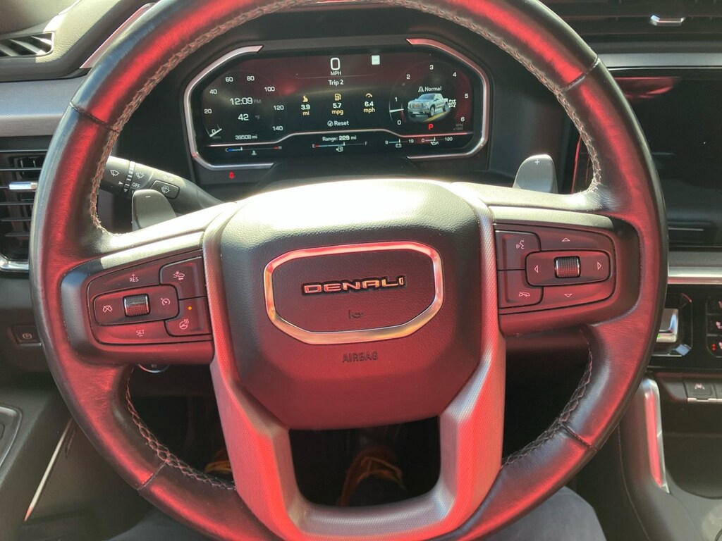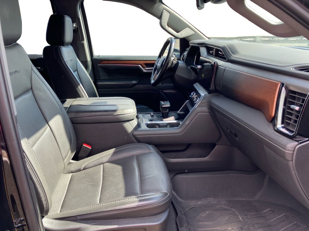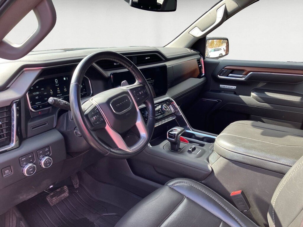 The selling price of the vehicle is market price plus the dealer documentation fee of $599, and the title fee of $5.00 that dealers may charge to procure the certificate of title. This vehicle may have an open recall. The dealer will make all reasonable attempts to clear this recall. If parts or non-remedy repairs are not available there may be a continued claim to monitor. Preferred Equipment Group 5SA (120-Volt Bed Mounted Power Outlet, 120-Volt Instrument Panel Power Outlet, 170 Amp Alternator, 2 Charge/Data USB Ports Inside Center Console, 2 Type-C Charge-Only Rear USB Ports, 2 USB Ports, Auto-Locking Rear Differential, Auxiliary External Transmission Oil Cooler, Bed View Camera, Chrome Header w/Signature Denali Chrome Grille, Chrome Recovery Hooks, Chrome Wheel To Wheel Assist Steps, Color-Keyed Carpeting Floor Covering, Compass, Deep-Tinted Glass, Electric Rear-Window Defogger, Electrical Steering Column Lock, Floor-Mounted Center Console, Front Rainsensing Wipers, GMC Connected Access Capable, HD Surround Vision, Heated 2nd Row Outboard Seats, Heated Driver & Front Outboard Passenger Seating, Heavy-Duty Air Filter, Hill Descent Control, Hitch Guidance w/Hitch View, In-Vehicle Trailering App, Integrated Trailer Brake Controller, Keyless Open & Start, LED Cargo Area Lighting, OnStar & GMC Connected Services Capable, Perimeter Lighting, Power Door Locks, Power Front Passenger Windows w/Express Up/Down, Power Front Windows w/Driver Express Up/Down, Power Rake & Telescoping Steering Column, Power Rear Windows w/Express Down, Power Sliding Rear Window w/Rear Defogger, Premium Bose 7-Speaker Sound System, Push Button Start, Rear Cross Traffic Braking, Rear Pedestrian Detection, Rear Wheelhouse Liners, Remote Vehicle Starter System, SiriusXM w/360L, Spray-On Pickup Bed Liner w/Denali Logo, Steering Wheel Audio Controls, Theft Deterrent System (Unauthorized Entry), Trailer Camera Provisions, Trailer Side Blind Zone Alert, Ultrasonic Front & Rear Park Assist, Universal Home Remote, Ventilated Driver & Front Passenger Seats, Wi-Fi Hotspot Capable, Wireless Charging, and Wireless Phone Projection), Trailering Package (Hitch Guidance), 10-Speed Automatic, 4WD, Black Leather, 10-Way Power Driver Seat Adjuster w/Lumbar, 10-Way Power Passenger Seat Adjuster w/Lumbar, 3.23 Rear Axle Ratio, 4-Wheel Disc Brakes, 7 Speakers, ABS brakes, Adaptive suspension, Air Conditioning, Alloy wheels, AM/FM radio, Apple CarPlay/Android Auto, Auto High-beam Headlights, Auto-dimming door mirrors, Auto-dimming Rear-View mirror, Automatic Emergency Braking, Automatic temperature control, Brake assist, Buckle to Drive, Bumpers: body-color, Delay-off headlights, Denali Premium Suspension w/Adaptive Ride Control, Driver door bin, Driver Memory, Driver vanity mirror, Dual front impact airbags, Dual front side impact airbags, Electronic Stability Control, Emergency communication system: OnStar and GMC connected services capable, Following Distance Indicator, Forge Perforated Leather Seat Trim, Forward Collision Alert, Front anti-roll bar, Front Bucket Seats, Front Center Armrest, Front dual zone A/C, Front fog lights, Front License Plate Kit, Front Pedestrian Braking, Front reading lights, Front wheel independent suspension, Fully automatic headlights, Garage door transmitter, Genuine wood console insert, Genuine wood dashboard insert, Genuine wood door panel insert, Heated door mirrors, Heated front seats, Heated rear seats, Heated steering wheel, Illuminated entry, IntelliBeam Automatic High Beam On/Off, Lane Keep Assist w/Lane Departure Warning, Low tire pressure warning, Memory seat, Navigation System, Not Equipped w/Steering Column Lock, Occupant sensing airbag, Outside temperature display, Overhead airbag, Overhead console, Panic alarm, Passenger door bin, Passenger vanity mirror, Power door mirrors, Power driver seat, Power passenger seat, Power steering, Power Sunroof, Power windows, Premium audio system