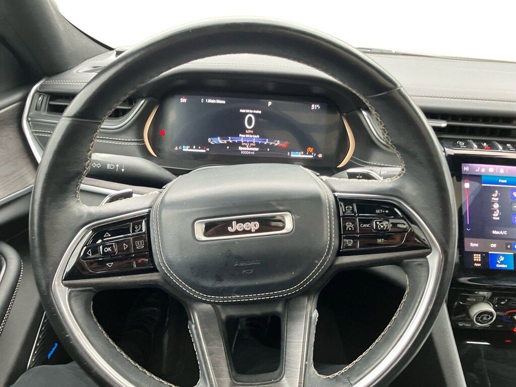 The selling price of the vehicle is market price plus the dealer documentation fee of $599, and the title fee of $5.00 that dealers may charge to procure the certificate of title. This vehicle may have an open recall. The dealer will make all reasonable attempts to clear this recall. If parts or non-remedy repairs are not available there may be a continued claim to monitor. Luxury Tech Group IV (2nd Row Manual Window Shades, ATC w/4 Zone Temp Control, Driver Power Seat Back Massage, Front Passenger Power Seat Back Massage, Nappa Leather Seats (TL), Passenger Seat Memory, Power Adjust 12-Way Driver Seat, Power Adjust 12-Way Front Passenger Seat, Rearview Autodim Digital Display Mirror, and Wireless Charging Pad), Quick Order Package 22N, 10 Speakers, 10.1 Touchscreen Display, 19 Speakers High Performance Audio, 3.45 Rear Axle Ratio, 3rd row seats: split-bench, 4-Wheel Disc Brakes, 950 Watt Amplifier, ABS brakes, Adaptive suspension, Air Conditioning, Air Susp/Activ Damping Delete Credit, Alloy wheels, AM/FM radio: SiriusXM w/360L, Anti-whiplash front head restraints, Apple CarPlay, Apple CarPlay/Android Auto, Audio memory, Auto High-beam Headlights, Auto-dimming door mirrors, Auto-dimming Rear-View mirror, Auto-leveling suspension, Automatic temperature control, Aux Battery, Brake assist, Bumpers: body-color, Compass, Connected Travel & Traffic Services, Connectivity - US/Canada, Delay-off headlights, Disassociated Touchscreen Display, Driver door bin, Driver vanity mirror, Dual front impact airbags, Dual front side impact airbags, Electronic Stability Control, Emergency communication system, Four wheel independent suspension, Front anti-roll bar, Front Bucket Seats, Front Center Armrest w/Storage, Front dual zone A/C, Front fog lights, Front License Plate Bracket (DISC), Front reading lights, Fully automatic headlights, Garage door transmitter, Google Android Auto, GPS Antenna Input, GPS Navigation, HD Radio, Heated door mirrors, Heated front seats, Heated rear seats, Heated steering wheel, Illuminated entry, Integrated Center Stack Radio, Integrated Voice Command w/Bluetooth, Knee airbag, Leather steering wheel, Low tire pressure warning, Memory seat, Nappa Leather Seats, Navigation System, Normal Duty Suspension, Occupant sensing airbag, Outside temperature display, Overhead airbag, Overhead console, Panic alarm, ParkView Rear Back-Up Camera, Passenger door bin, Passenger vanity mirror, Power door mirrors, Power driver seat, Power Fold Seatbacks, Power Liftgate, Power moonroof: CommandView, Power passenger seat, Power steering, Power windows, Radio data system, Radio: Uconnect 5 Nav w/10.1 Display, Radio: Uconnect 5 Nav w/8.4 Display, Rain sensing wipers, Rear air conditioning, Rear anti-roll bar, Rear reading lights, Rear window defroster, Rear window wiper, Reclining 3rd row seat, Remote keyless entry, Roof rack: rails only, Security system, SiriusXM Satellite Radio, SiriusXM w/360L, Speed control, Speed-Sensitive Wipers, Split folding rear seat, Spoiler, Steering wheel memory, Steering wheel mounted audio controls, Tachometer, Telescoping steering wheel, Tilt steering wheel, Traction control, Trip computer, Turn signal indicator mirrors, USB Host Flip, Variably intermittent wipers, Ventilated front seats, Voltmeter, and Wheels: 20 x 8.5 Machined Face Aluminum.CARFAX One-Owner. Clean CARFAX.2021 Jeep Grand Cherokee L Overland Silver Zynith3.6L V6 24V VVT 8-Speed Automatic 4WD18/25 City/Highway MPG